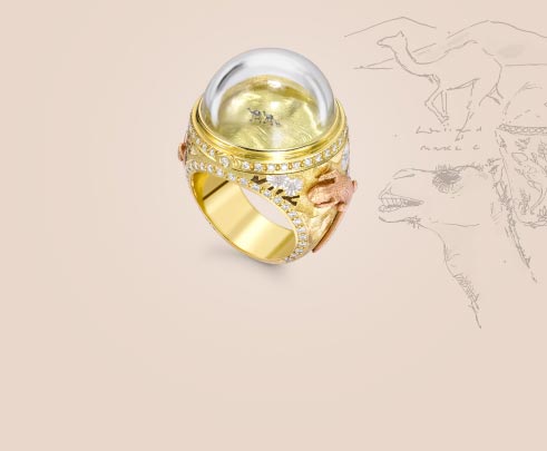 A single masterwork involves the virtuosity of a group of artists working with Theo, from his first sketch to the finished jewel.
