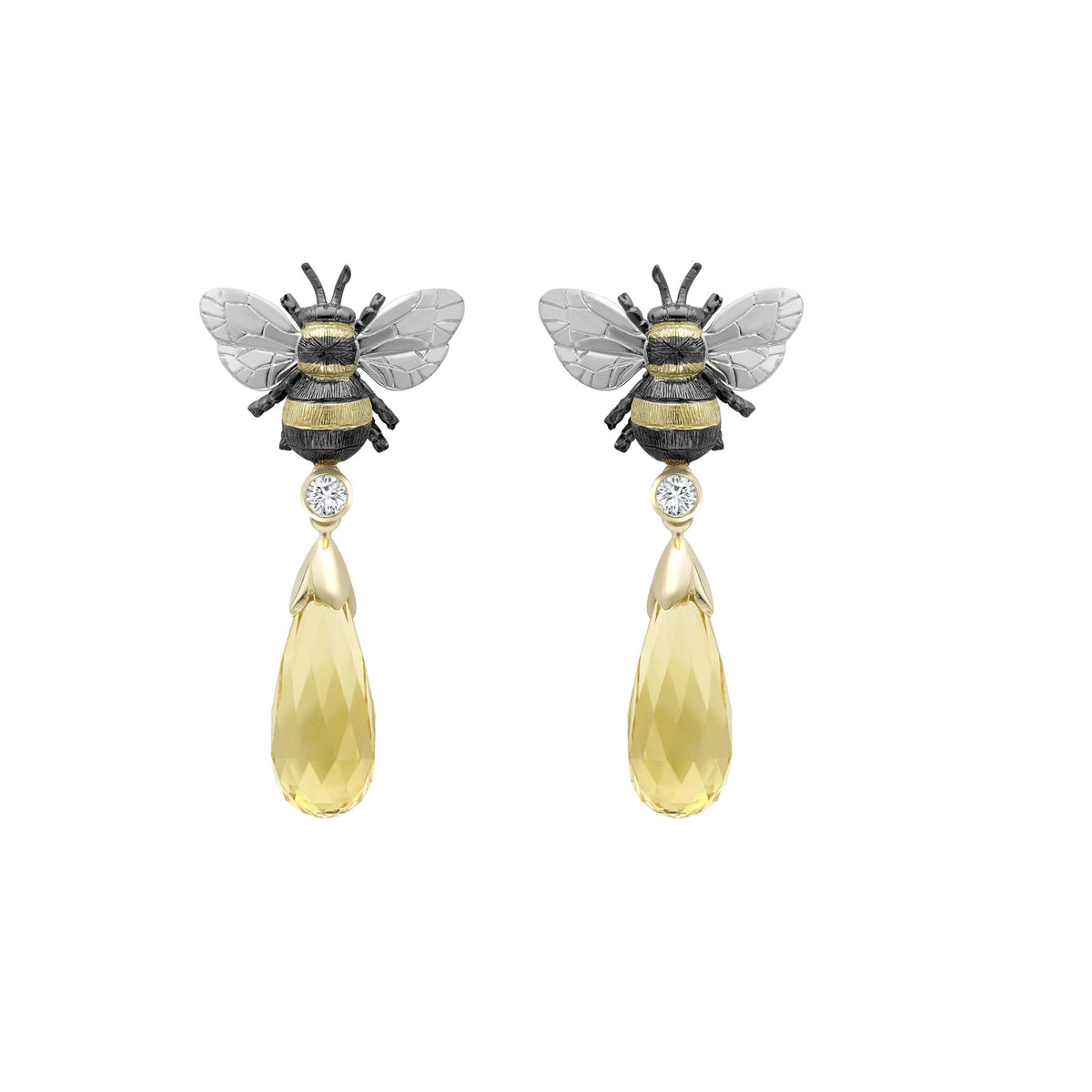 Amethyst & Diamond Large Bee Drop Earrings