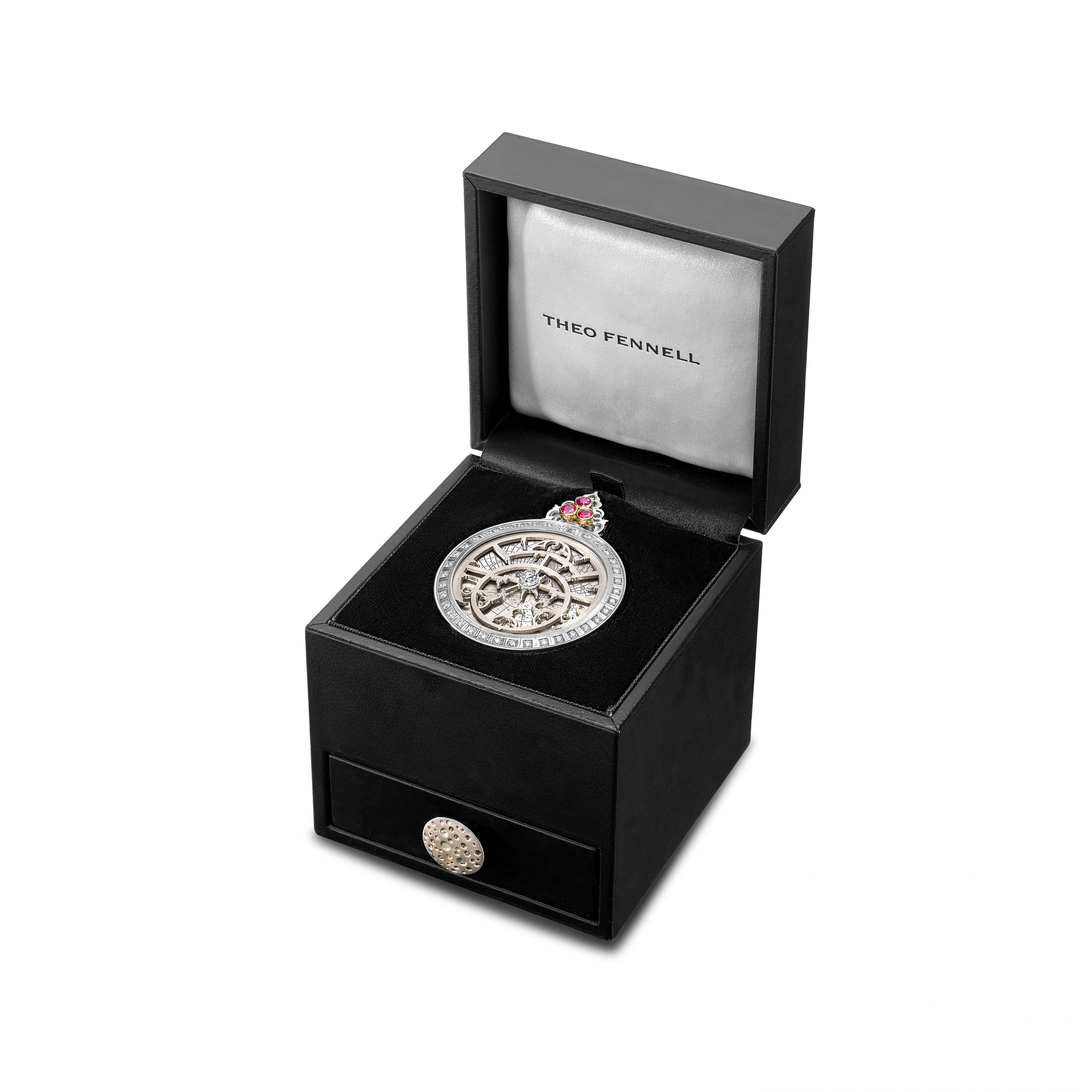 18ct White Gold 1.66ct Diamond & Ruby 1.60ct Astrolabe Pendant With Bespoke Box