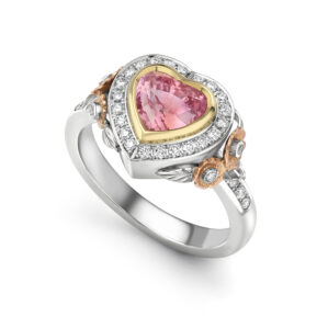 Pink Sapphire Heart and Diamond Flower Tryst Ring