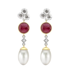 Ruby, Diamond and Pearl Fable Drop Earrings